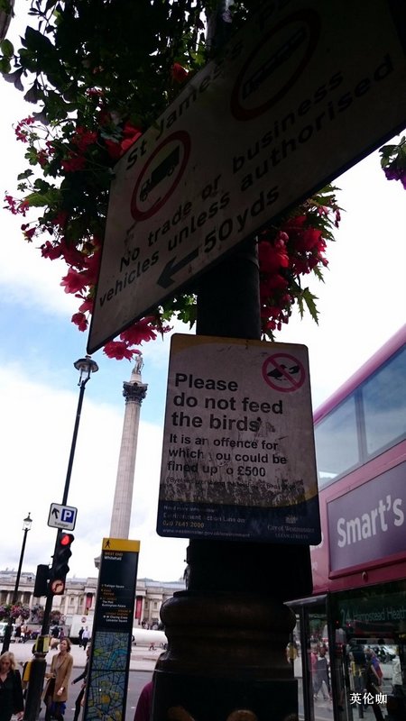 出发之前就多次在微博调侃此次伦敦呆五天之久主要就是喂鸽子的,谁知快到特拉法加广场时看到这么一块牌子。。。