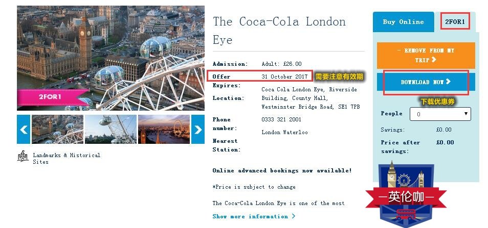 伦敦景点凭火车票享2for1优惠攻略