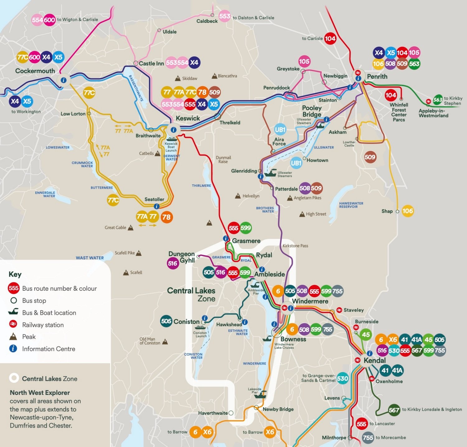 ‣ Explorer Zone:全区,几乎全包,如果想从Windermere坐公交去Keswick,买此区域的票
