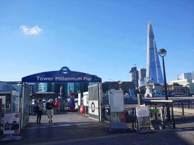 继续溜达到Tower Pier码头,惦记去坐船感受一下泰晤士河景,结果刷Oyster Card的时候发现余额不足,工作人员说我们要去最近的Tower Hill地铁站充值,才能回来坐船,,,好吧!我们宁可放弃坐船,也不想原路走回去再走回来