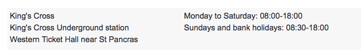 小朋友先和大人一起再自动售票机上买成人卡,然后去 Visitor Centre找工作人员设置Young Visitor Discount,国王十字的Visitor Centre位置和营业时间如下